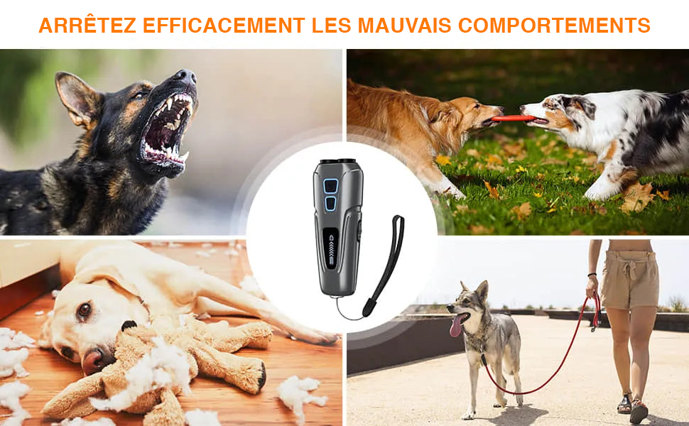 ✅ Un son ultrasonique haute fréquence sans danger—audible uniquement par les chiens—attire instantanément leur attention, arrêtant les aboiements ou comportements indésirables sur le coup.