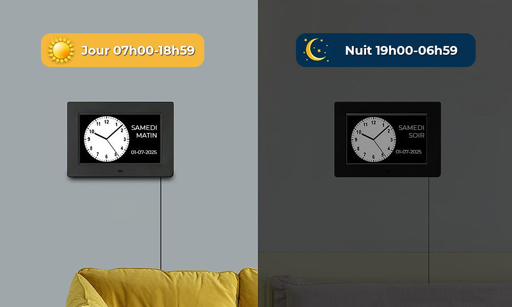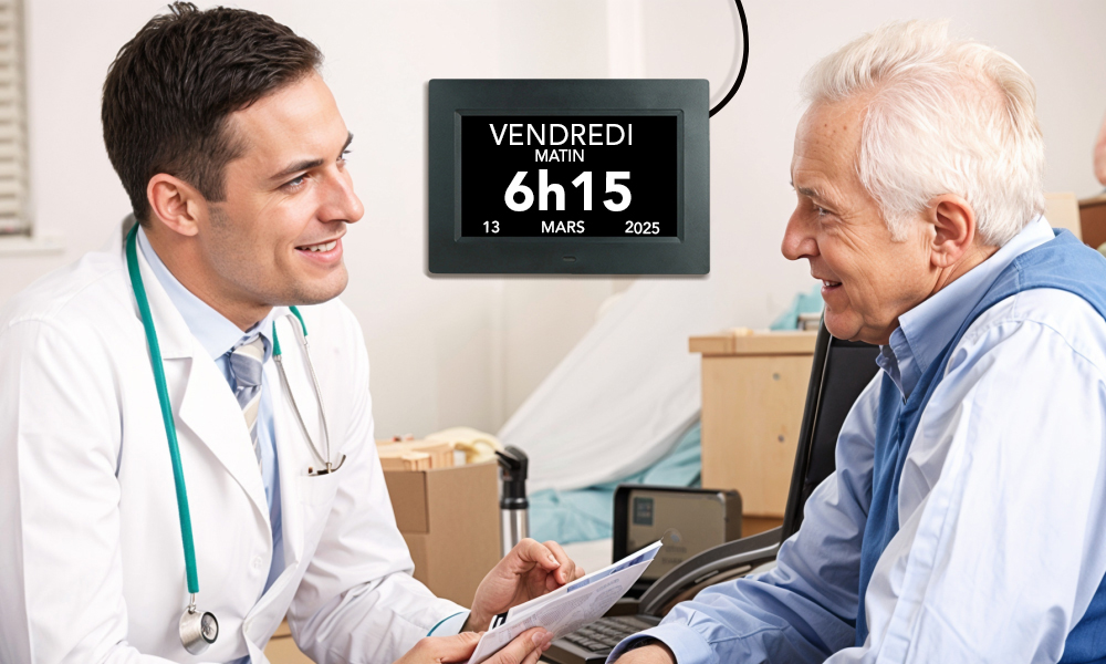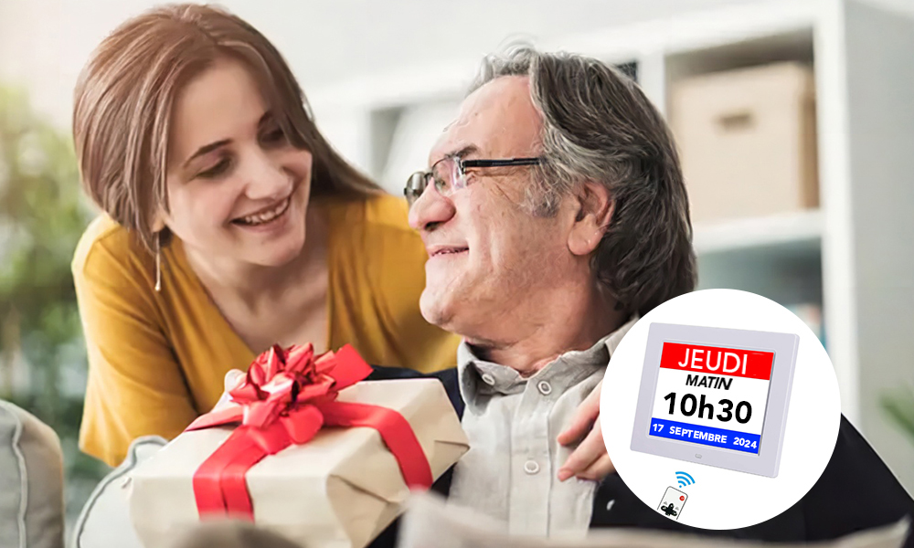 Une horloge numérique spécialement conçue pour les seniors. Des millions de familles avec des patients atteints de démence la recommandent car elle a considérablement allégé le fardeau de devoir constamment rappeler les choses à leurs proches.