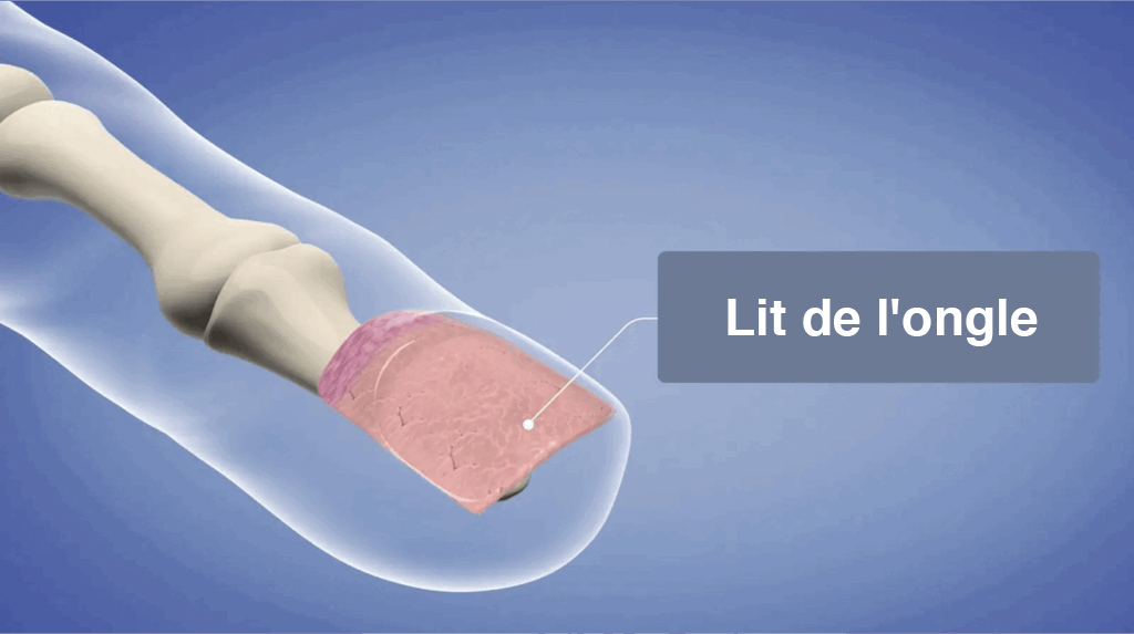 Lorsqu'un champignon infecte nos ongles, il se développe dans le lit de l'ongle, c'est-à-dire la peau située sous l'ongle
