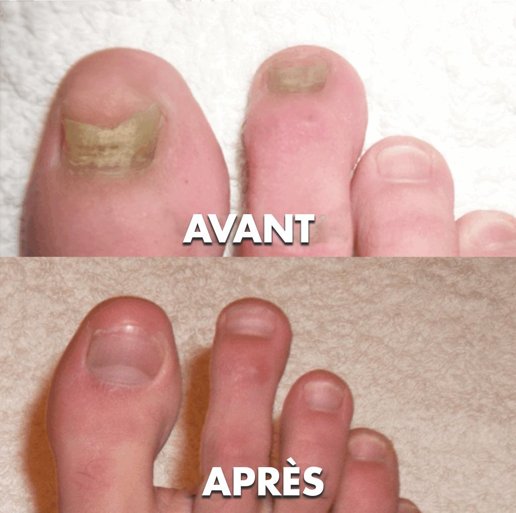 Cette zone offre un environnement idéal pour le développement du champignon.En se développant, il attaque l'ongle, le rendant décoloré, épais et déformé. Cette infection peut également provoquer une odeur désagréable et des douleurs. Cela signifie que tant que le champignon est présent dans le lit de l'ongle, l'ongle continuera à repousser infecté.Le problème est le suivant : les remèdes de grand-mère et les produits vendus en pharmacie ne combattent le champignon qu'en surface de l'ongle,pas dans le lit de l'ongle où il réside vraiment.