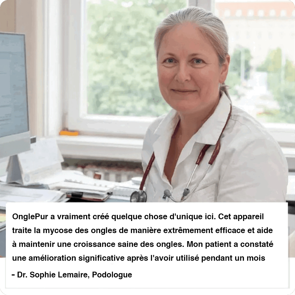OnglePur a été conçu par un podologue et un dermatologue de renom comme une méthode efficace pour éliminer la mycose des ongles.