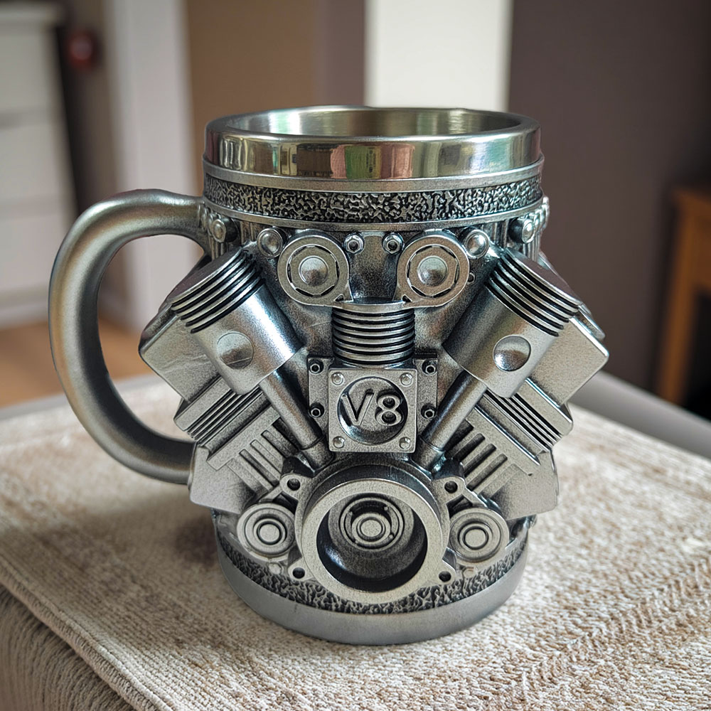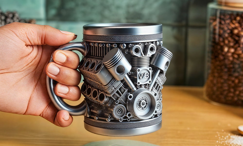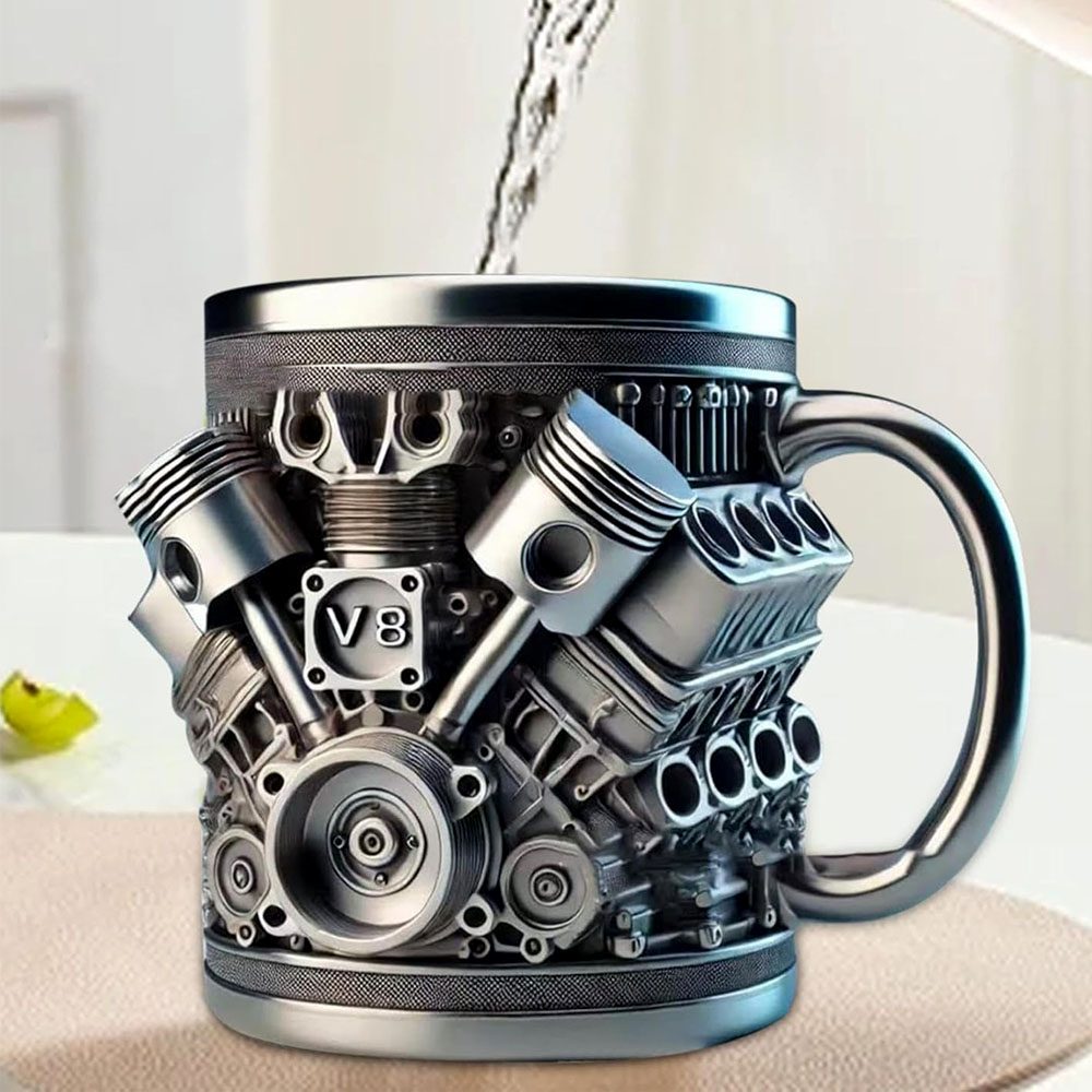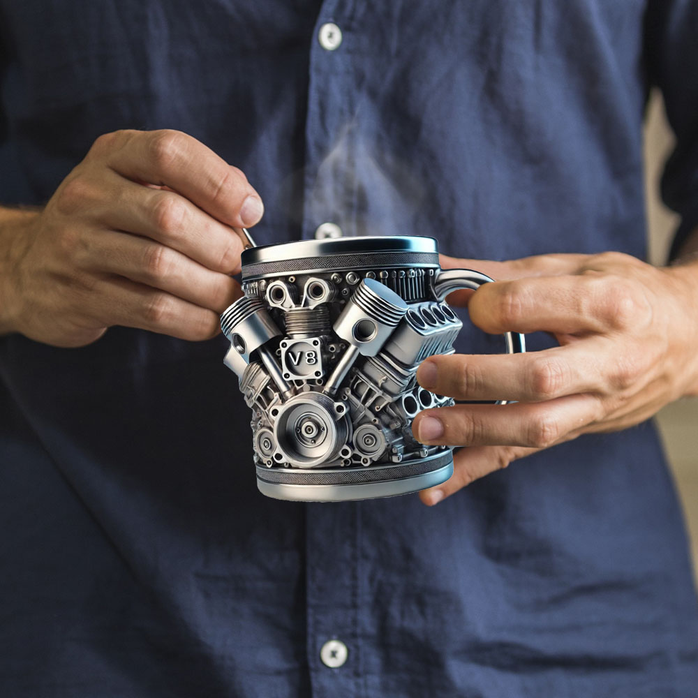 "J'ai acheté ceci pour mon ami qui est obsédé par les voitures, et il a adoré ! Le détail des moteurs V6 & V8 est impressionnant, et le mug semble super solide. Il l'utilise à chaque rassemblement auto, et c'est devenu un lanceur de conversation. Je le recommande vivement à tout amateur de voitures."