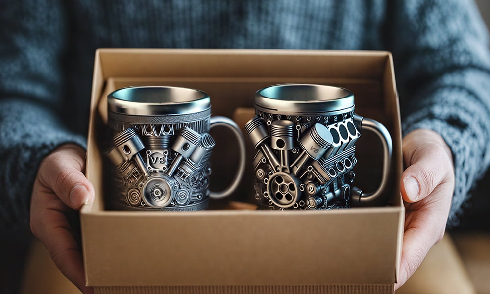 À l'intérieur se trouvaient deux magnifiques mugs reproduisant des moteurs V6 et V8. Au premier regard, j'ai pensé que c'était juste un gadget, mais en les examinant attentivement, j'ai su que c'était bien plus que ça.