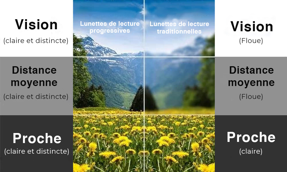 De plus, comparons les lunettes de lecture progressives et les lunettes de lecture traditionnelles :