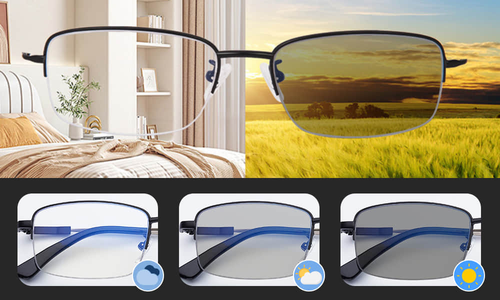 Lorsque la lumière du soleil s'intensifie, les verres s'assombrissent rapidement pour protéger vos yeux. Lorsque vous rentrez à l'intérieur, les verres s'éclaircissent rapidement. C'est comme avoir des yeux magiques qui s'ajustent automatiquement sans aucun effort manuel.